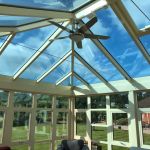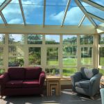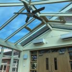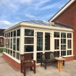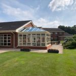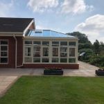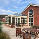 A conservatory we recently completed at Severn Hospice in Shrewsbury. Built in fully thermally broken aluminium, coloured in a relaxing Ral 1015 light ivory. The roof has two electrically operated vents for natural ventilation, utilizing temperature and rain sensors for fully automatic or manual operation. The large area of glazing on three sides give panoramic views of the beautiful garden area. The double doors give nice easy access in and out of the building.
