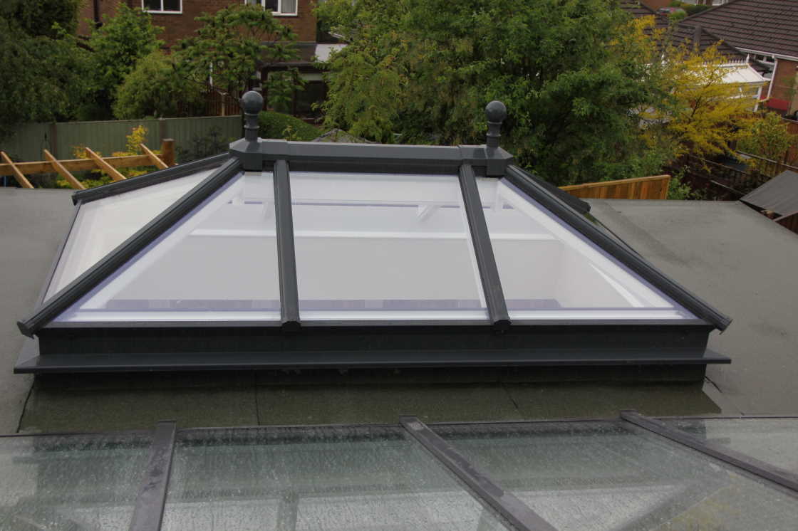 Double hipped rooflight, powder coated dual colour black outside and white inside